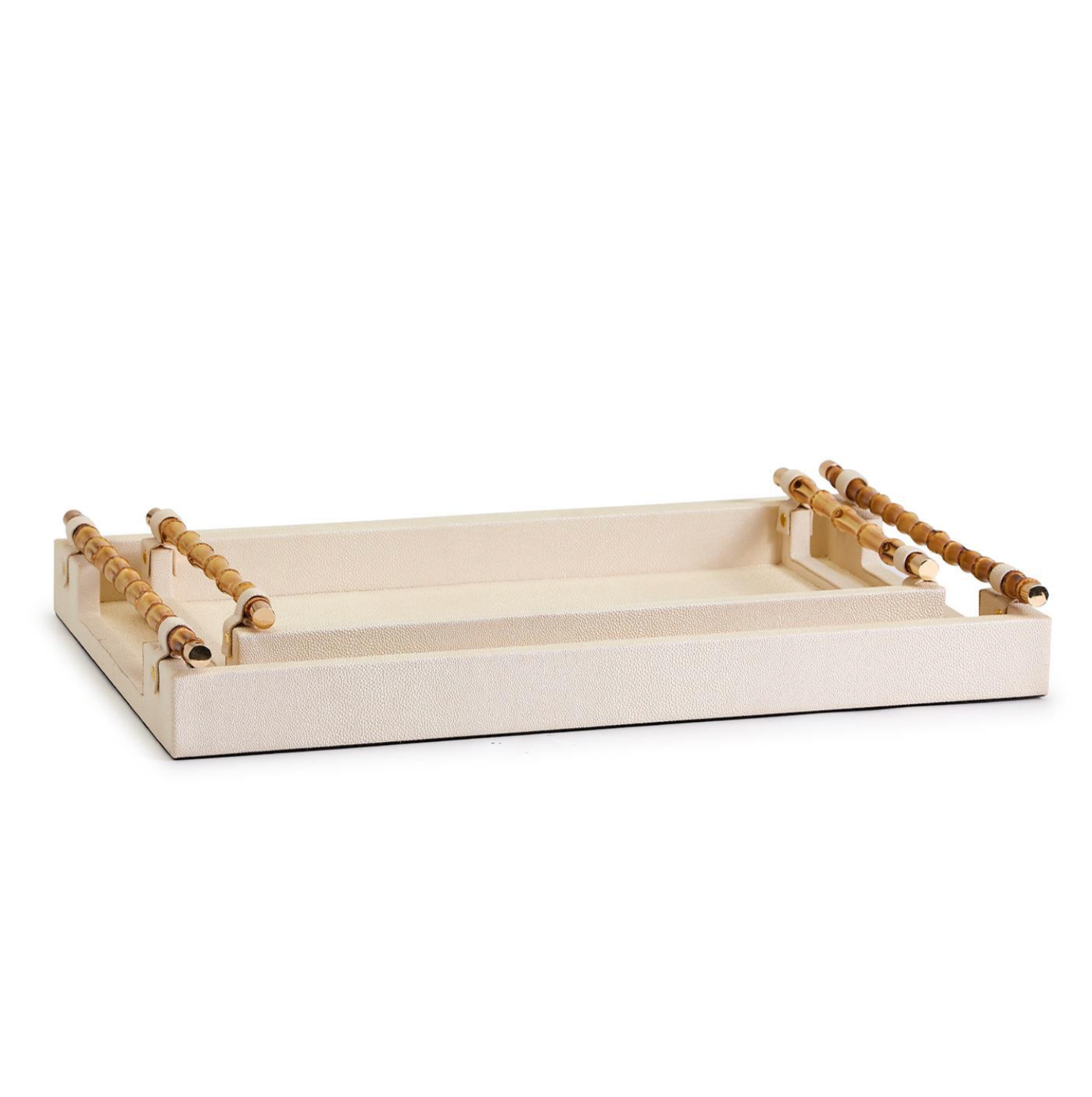 Cream Decorative Rectangle Tray w Bamboo Handles